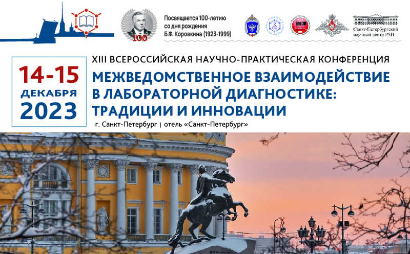 XIII Всероссийская научно-практическая конференция «Межведомственное взаимодействие в лабораторной диагностике: традиции и инновации» состоится 14–15 декабря 2023 в Санкте-Петербурге в конгресс-холле отеля «Санкт-Петербург». Мероприятие посвящено 100-летию со дня рождения советского ученого-медика, биохимика, организатора здравоохранения и медицинской науки, члена-корреспондента РАМН Бориса Федоровича Коровкина.