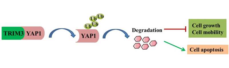 Высокая экспрессия TRIM3 приводит к убиквитинированию и деградации YAP1 и затем к ингибированию пролиферации клеток и стимуляции апоптоза. Credit: Sci Rep (2025). DOI: