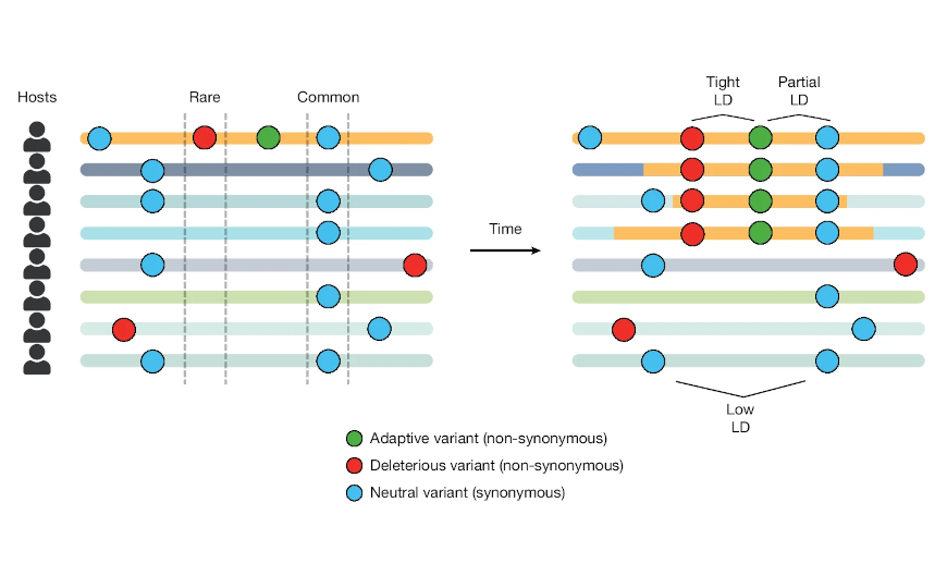 Для решения этой задачи исследователи разработали подход к анализу неравновесного сцепления генов — iLDS (integrated linkage disequilibrium score). Он опирается на предположение о том, что при адаптивном сдвиге полезная мутация уносит за собой соседние, часто вредные несинонимичные варианты, которые временно закрепляются в популяции. В результате вблизи адаптивного гена наблюдается повышенное сцепление именно несинонимичных замен.