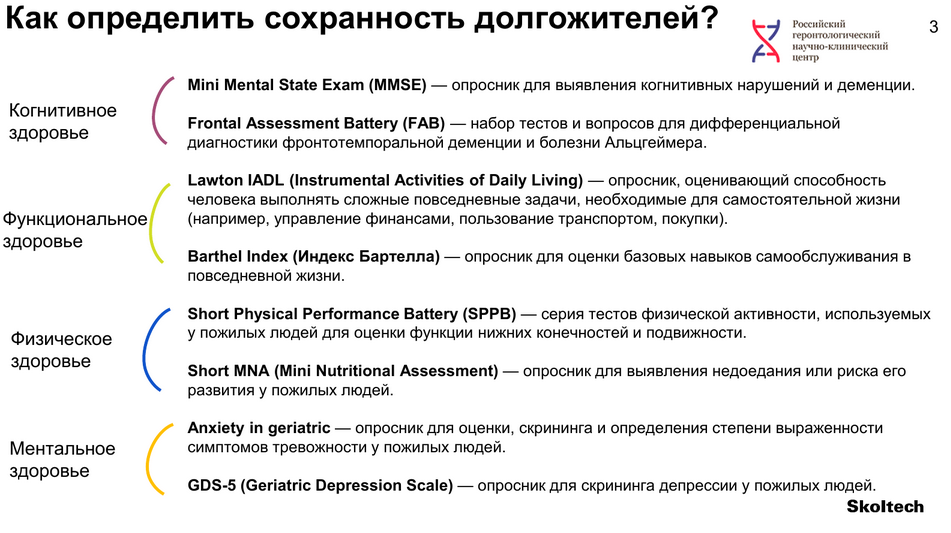 Определить сохранность долгожителей можно с помощью комплексной гериатрической оценки, которая использует набор опросников и шкал.