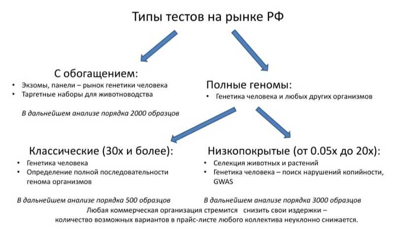 Также на рынке представлены тесты для анализа ДНК, ориентированные на решение разных задач.