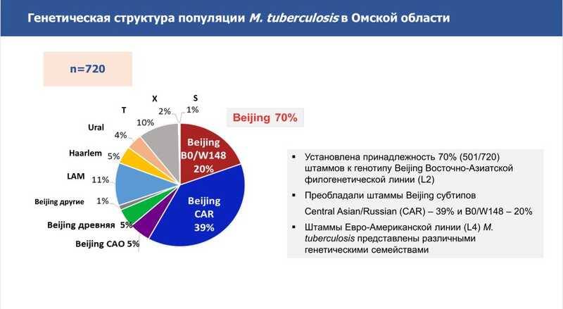 Большую эпидемиологическую значимость имеют штаммы Восточно-Азиатской сублинии L2 (Beijing). К ней относится и ряд штаммов, циркулирующих на территории РФ.