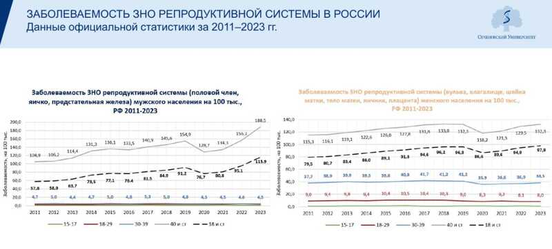 Вирусы папилломы человека (ВПЧ) вызывает различные типы рака, не только у женщин, но и у мужчин. Однако по числу вызванных ими случаев лидирует рак шейки матки (РШМ). Число злокачественных новообразований репродуктивной системы в России демонстрирует устойчивую тенденцию к росту. В 2023 году зарегистрировано 62346 случаев у женщин старше 18 лет, в том числе 16355 случаев РШМ.