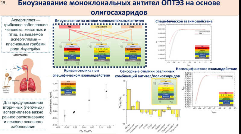 Помимо аптамеров, ученые использовали моноклональные антитела для детекции олигосахаридов. Такой сенсор можно применять для диагностики аспергиллеза.