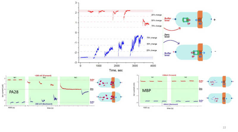 С коллегами из Института биоорганической химии им. М.М. Шемякина и Ю.А. Овчинникова РАН исследователи попробовали проанализировать с помощью твердотельной нанопоры 20S-субъединицу протеасомы. К системе из единичных молекул 20S-субъединиц добавляли молекулы-активаторы — PA28 и MBP. Так впервые удалось исследовать динамику разложения субстрата протеасомой in situ, а не на замороженных молекулах.
