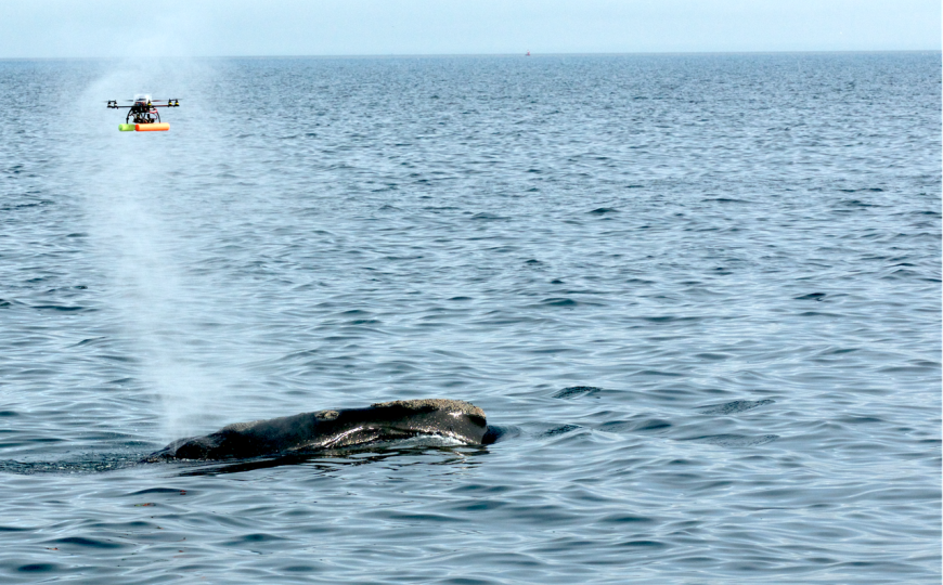 Авторы статьи в The ISME Journal использовали дронов для отбора образцов выдоха северных гладких китов (Eubalaena glacialis). Этот вид, обитающий на севере Атлантического океана, классифицирован как находящийся на грани исчезновения. Пробы брали в заливе Кейп-Код (штат Массачусетс, США), во время весенних сезонов кормления китов 2016–2024 гг. Также дроны проводили фотосъемку, что позволило оценить внешний вид животных. Всего было проанализировано 103 образца выдоха от 85 китов.