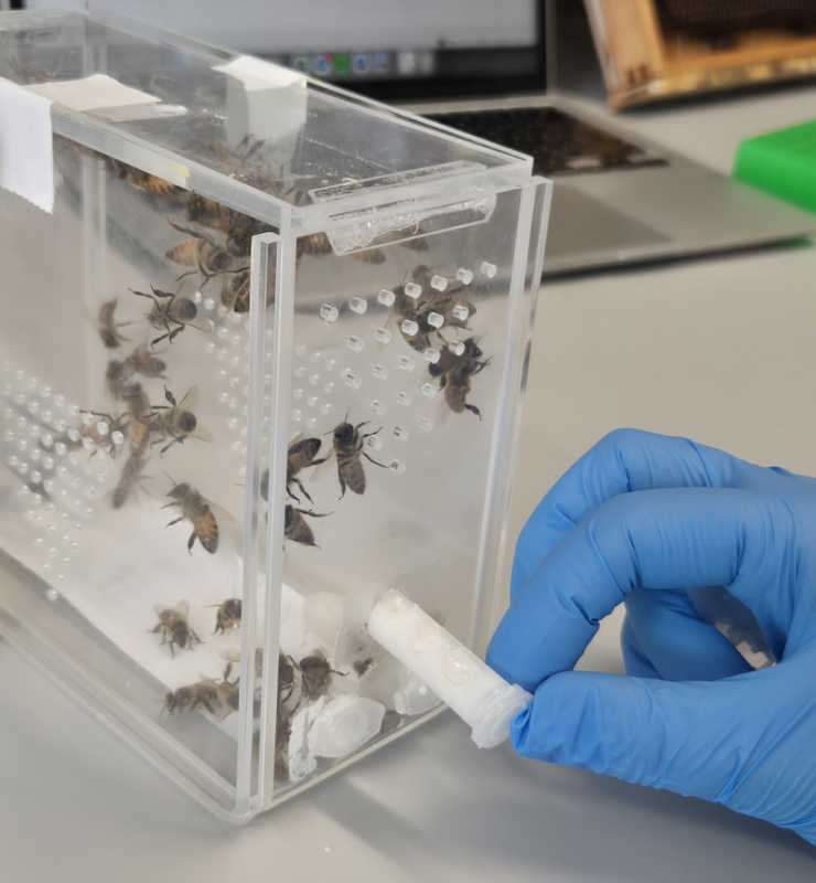 Модифицированный штамм культивировали в биореакторах параллельно с двумя контрольными штаммами дрожжей, не продуцирующими целевых стеролов. Затем провели испытания по кормлению пчел в контролируемой «полуполевой» среде. Для создания полноценного корма дрожжевую биомассу, обогащенную или не обогащенную стеролами, смешивали с базовым пчелиным рационом, содержащим белки, жиры и сахара, и добавляли коммерчески доступную смесь фитостеролов, богатую шестым стеролом. Наблюдение за колониями пчел, получавшими каждый из четырех рационов, продолжалось три месяца. Каждые 15 дней авторы оценивали количество яиц, личинок и куколок в колониях.