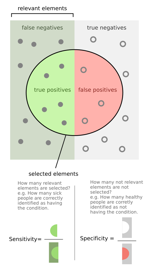 By Walber, FeanDoe - https://commons.wikimedia.org/wiki/File:Precisionrecall.svg, CC BY-SA 4.0, https://commons.wikimedia.org/w/index.php?curid=176744678Положительная прогностическая ценность теста — доля истинно положительных результатов среди положительных (вероятность того, что положительный результат является истинным):