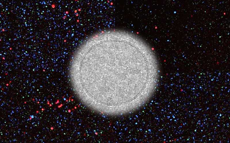 Три белка в мембране малых внеклеточных везикулах (показаны красным, зеленым и синим цветом) могут стать биомаркерами для выявления рака яичников.