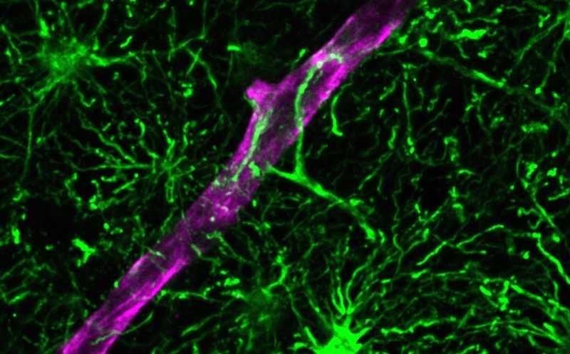 Астроциты в мозге активно взаимодействуют и с нейронами, и с сосудами. С помощью электронной микроскопии ученые показали, что в трансплантате астроциты находились вблизи синапсов нейронов. Также подтвердилось взаимодействие с сосудами: отростки астроцитов покрывали всю поверхность сосудов в трансплантате.