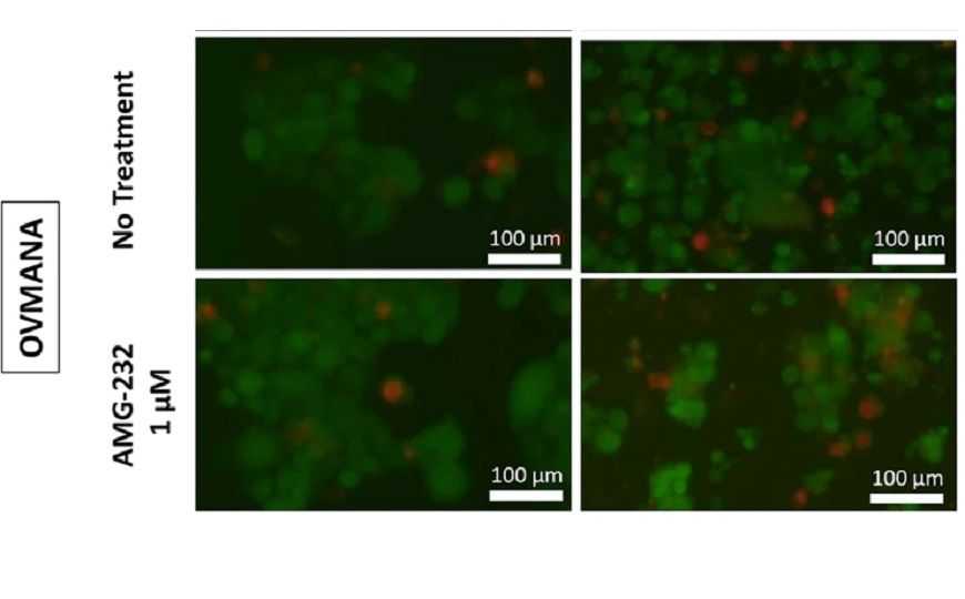 Наконец, в сочетании с терапией анти-PD-1 антителами (пембролизумаб), AMG-232 усиливал поражение опухолевых клеток Т-клетками (такой эффект был статистически достоверен в одной из клеточных линий, OVMANA), причем для самих Т-клеток AMG-232 не был токсичен.