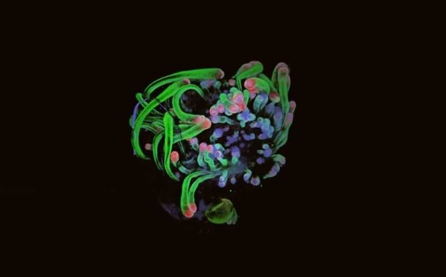 «Мы разработали новый рецепт приготовления кожи человека, которая производит волосяные фолликулы примерно за 70 дней культивирования, — сказал Келер. (На таком же сроке развиваются фолликулы человеческого волоса во время беременности.) «Когда волосяные фолликулы растут, корни распространяются в радиальном направлении. Это причудливая структура, которая выглядит почти как глубоководное существо с щупальцами», — добавил он.
