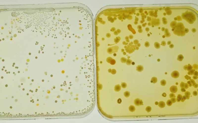 Микробиота с упаковки фруктов, выращенная в лаборатории