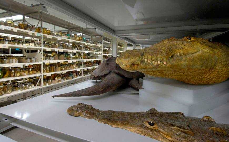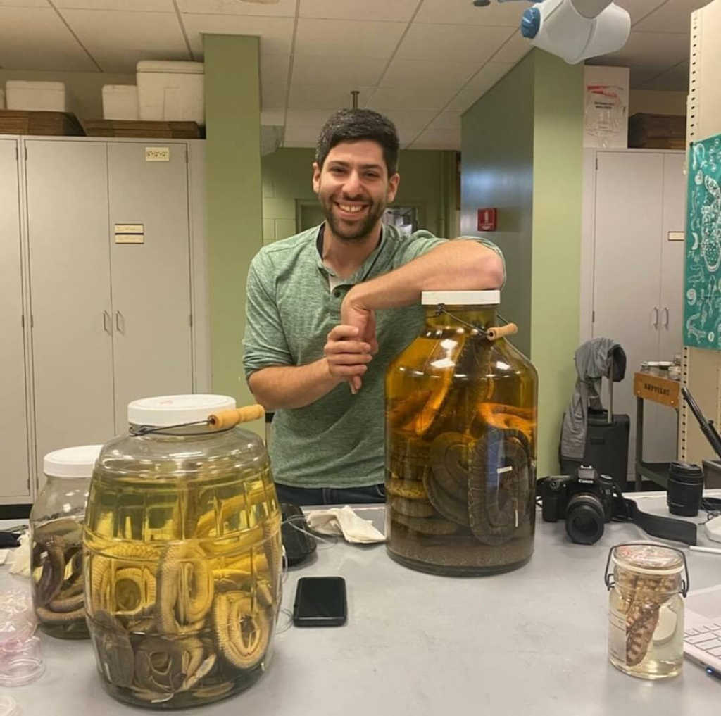 Джастин Бернстайн в коллекции рептилий Музея Филда. Credit: Sara Ruane, Field Museum