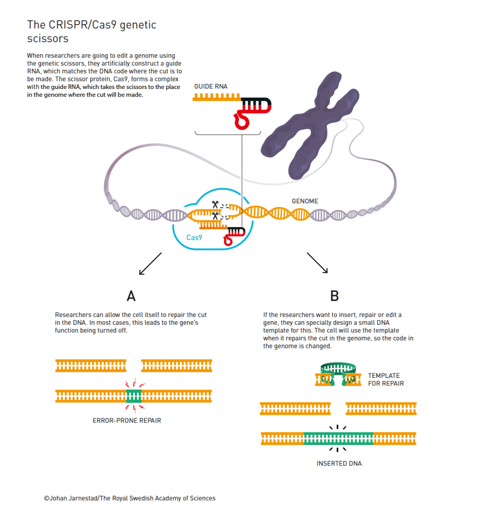 CRISPR: принцип метода. Credit: Johan Jarnestad/The Royal Swedish Academy of Sciences
