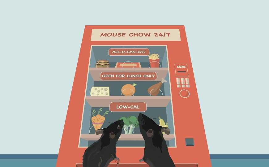 Исследование проводилось на сотнях мышей (линия C57BL/6J, самцы) в течение четырех лет. У контрольных животных был свободный доступ к пище, другим ограничили калорийность питания на 30–40%. Некоторые из них получали свою диетическую еду небольшими порциями на протяжении суток, 12 ночных или 12 дневных часов. (Для мышей, в отличие от людей, естественно питаться ночью.) Еще две группы получали всю порцию в начале дня или в начале ночи; при таком режиме кормления мышь обычно съедает всю еду за два часа.