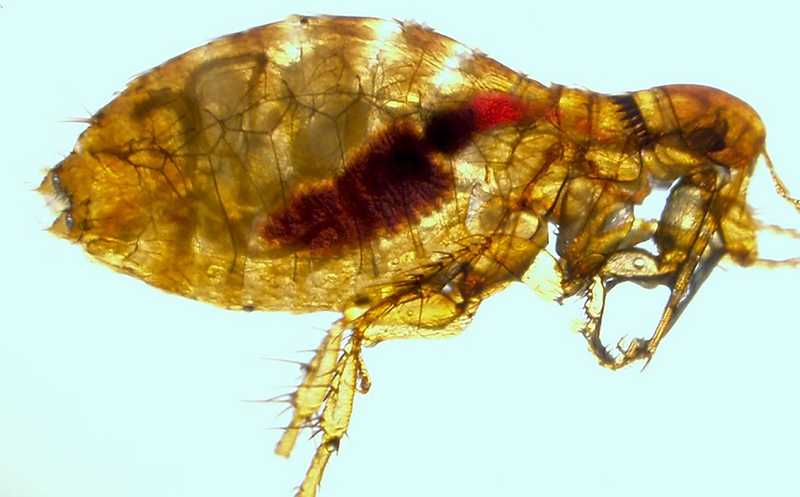 Блоха Oropsylla montana, зараженная Yersinia pestis.