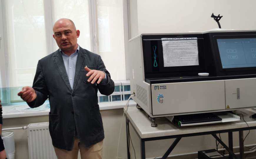 Денис Ребриков проводит экскурсию в сиквенс-центре РНИМУ. Credit: Ирина Конова.В рамках конференции также прошли секции, посвященные применению NGS в клинической диагностике и микробиологии.
