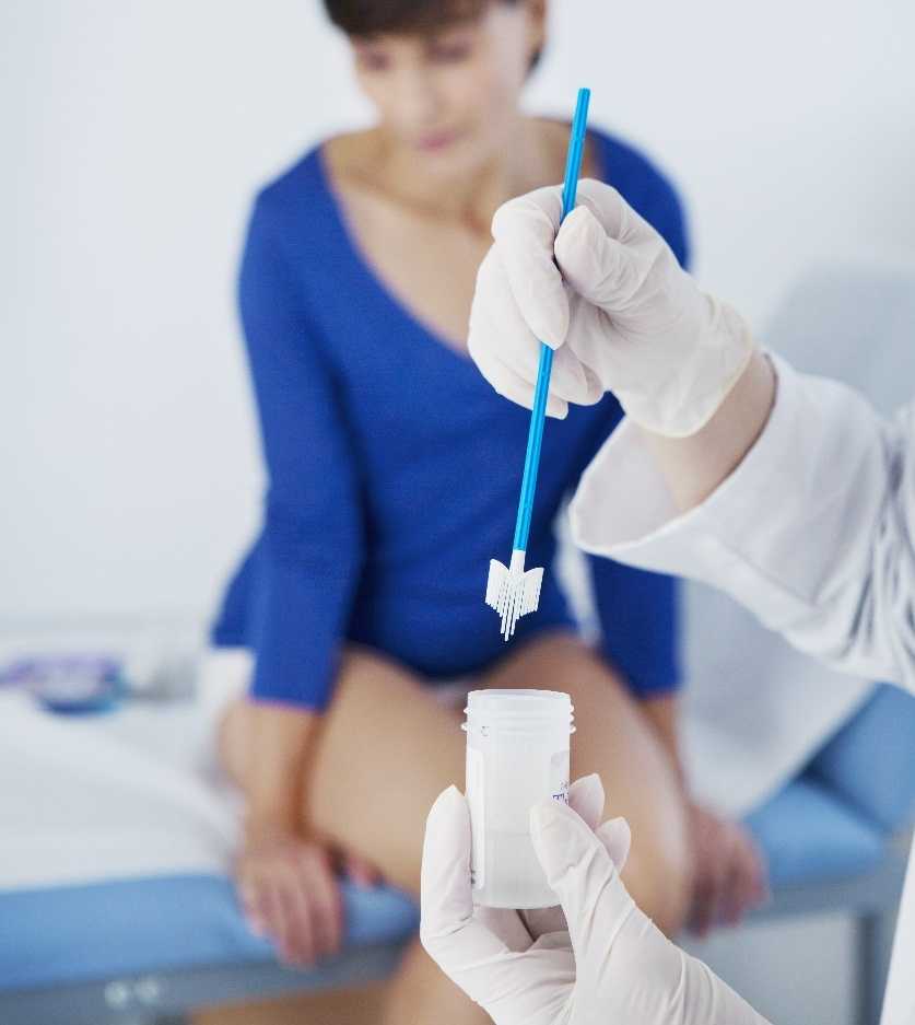 Традиционно в качестве скринингового теста на РШМ выбирается цитологическое исследование. Как оно выполняется? Аномальные клетки эпителия выявляют с помощью мазка по Папаниколау (Пап-мазок): образец собирают маленькой щеточкой с поверхности шейки матки, наносят на предметное стекло, быстро фиксируют, затем окрашивают и микроскопируют. Современная альтернатива классическому Пап-мазку — жидкостная цитология: образец помещают в жидкую среду, которая стабилизирует клетки, затем центрифугируют либо фильтруют и только после этого «отмытые» клетки наносятся на стекло. Жидкостная цитология может дополняться молекулярной диагностикой ВПЧ.