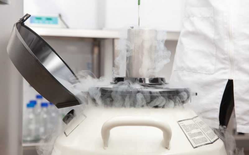 Для заморозки и хранения в жидком азоте используют специальные резервуары — сосуды Дьюара.