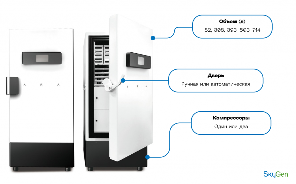 Использование жидкого азота для хранения биологических образцов имеет свои недостатки. Высокая стоимость, сложность бесперебойных поставок жидкого азота, а также необходимость отдельного, специально оборудованного помещения для криохранилища вынуждают многие лаборатории искать альтернативы. В этом случае могут быть выбраны низкотемпературные морозильники. На рынке представлено большое разнообразие морозильников, подходящих для самых разных нужд, объемов хранения и задач.