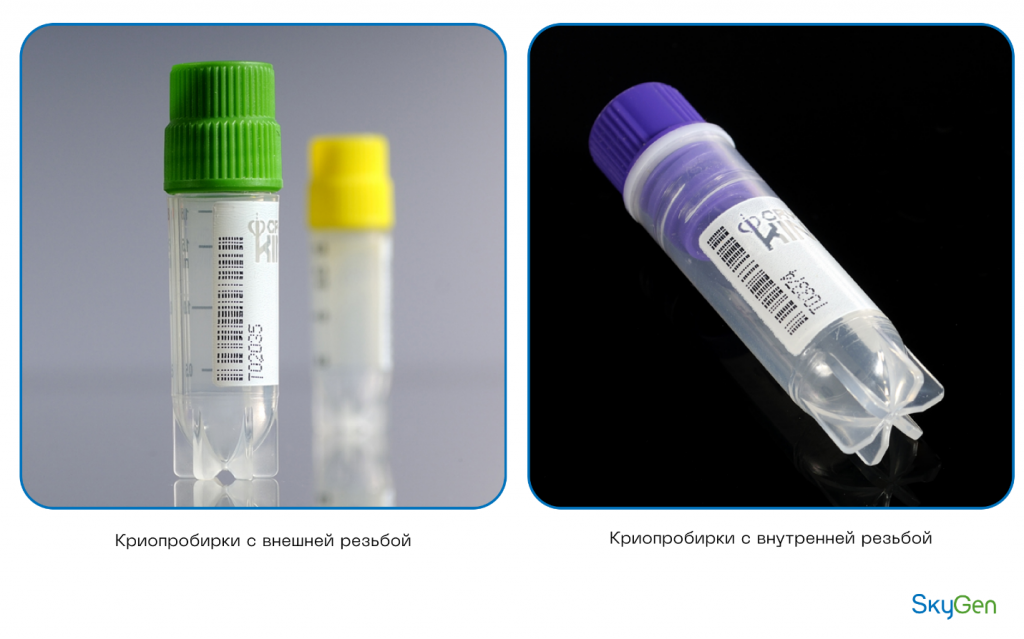 Для длительного хранения биообразцов при низких температурах не подходят обычные или стеклянные пробирки, поскольку они остывают быстрее и при размораживании могут потрескаться и вовсе лопнуть. Сейчас следует использовать специальные криопробирки из медицинского полипропилена. Их особенности: