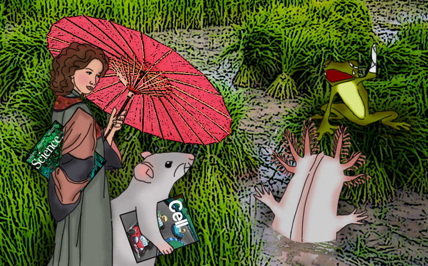 13. Аксолотль Ambystoma mexicanum может полноценно регенерировать утраченную конечность, тогда как у шпорцевых лягушек Xenopus laevis после метаморфоза способность к регенерации ограничена. Авторы статьи в Developmental Cell провели секвенирование РНК единичных клеток развивающейся почки конечности головастика лягушки, а также клеток бластемы — соединительной ткани, отвечающей за регенерацию конечности у аксолотля и взрослой лягушки. Оказалось, что активность генов, сопутствующих дифференцировке фибробластов в хрящ, различалась у головастика и взрослой лягушки. При развитии конечности головастика специфически экспрессировались гены сигнального пути Wnt и минерализации хряща, а при регенерации у взрослой лягушки — гены, ответственные за клеточную адгезию. У аксолотля же в участках регенерации были активны другие факторы, не обнаруженные у лягушки, и паттерны экспрессии в течение жизни существенно не изменялись.